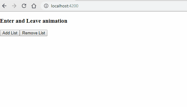 Here we have defined the trigger EnterLeave. The transition ': enter' will wait for 300ms and then it will be executed for 0.5 seconds with an ease-in effect. While the transition ': leave' will be performed for 0.3 s with an ease-out effect.